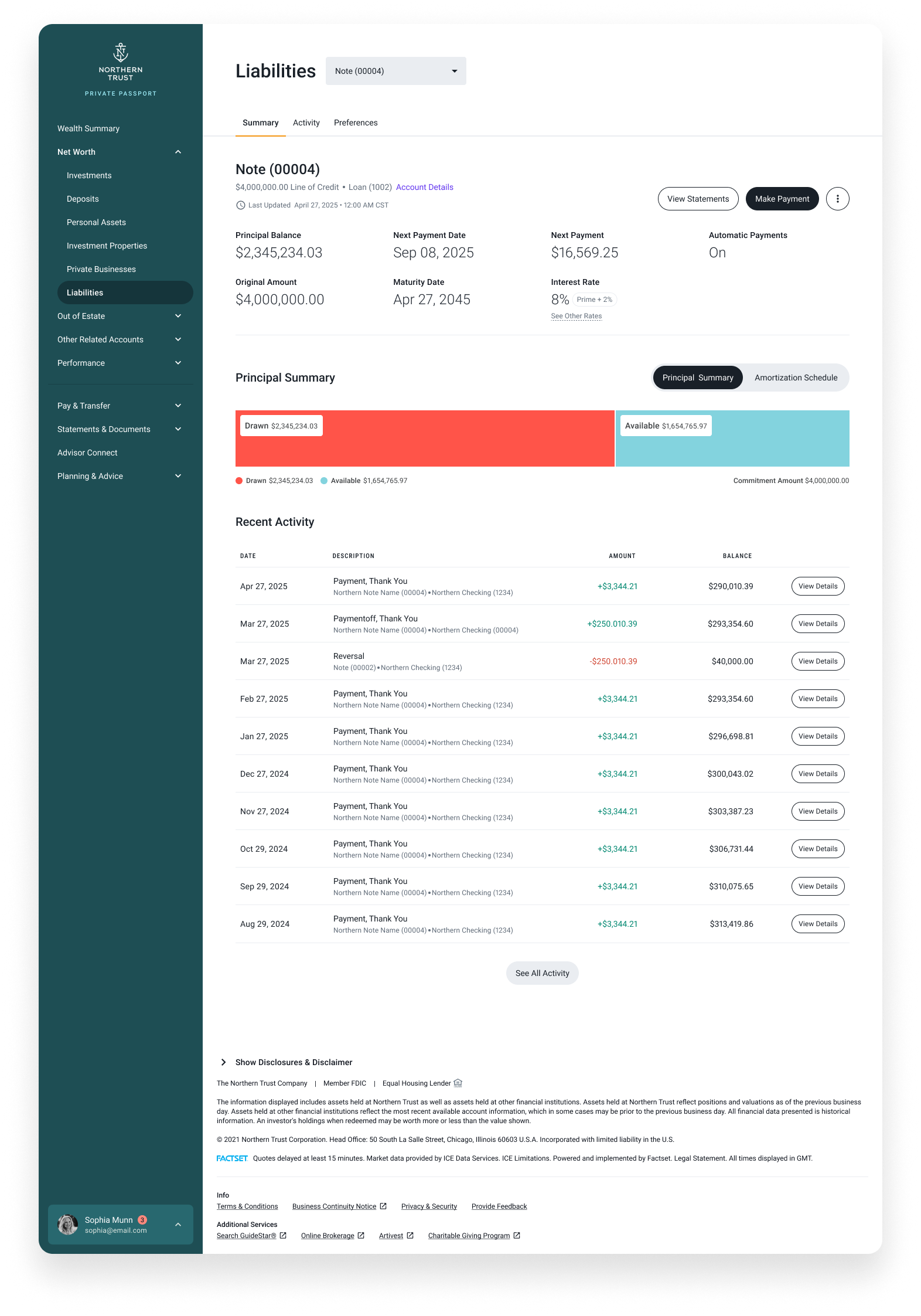 This prototype kicked off a shared understanding across the Banking team of how clients view and manage their deposits and loans online. I partnered with business leaders, product owners, and subject matter experts to make sense of a pretty complex ecosystem—CDs, checking, term loans, lines of credit, and more. It was an incredibly fun and collaborative effort that set the stage for everything that followed.