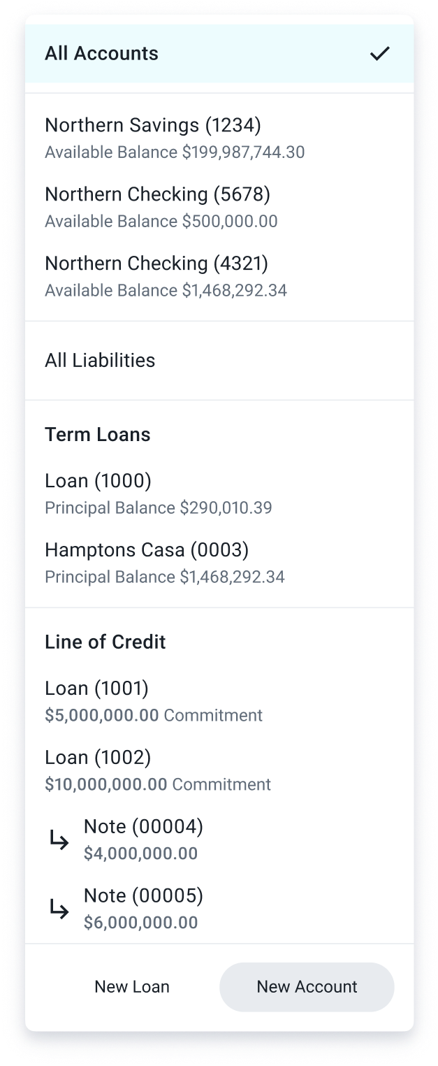 The persistent account selector allowed us to quickly and seamlessly navigate between different deposit and loan accounts.