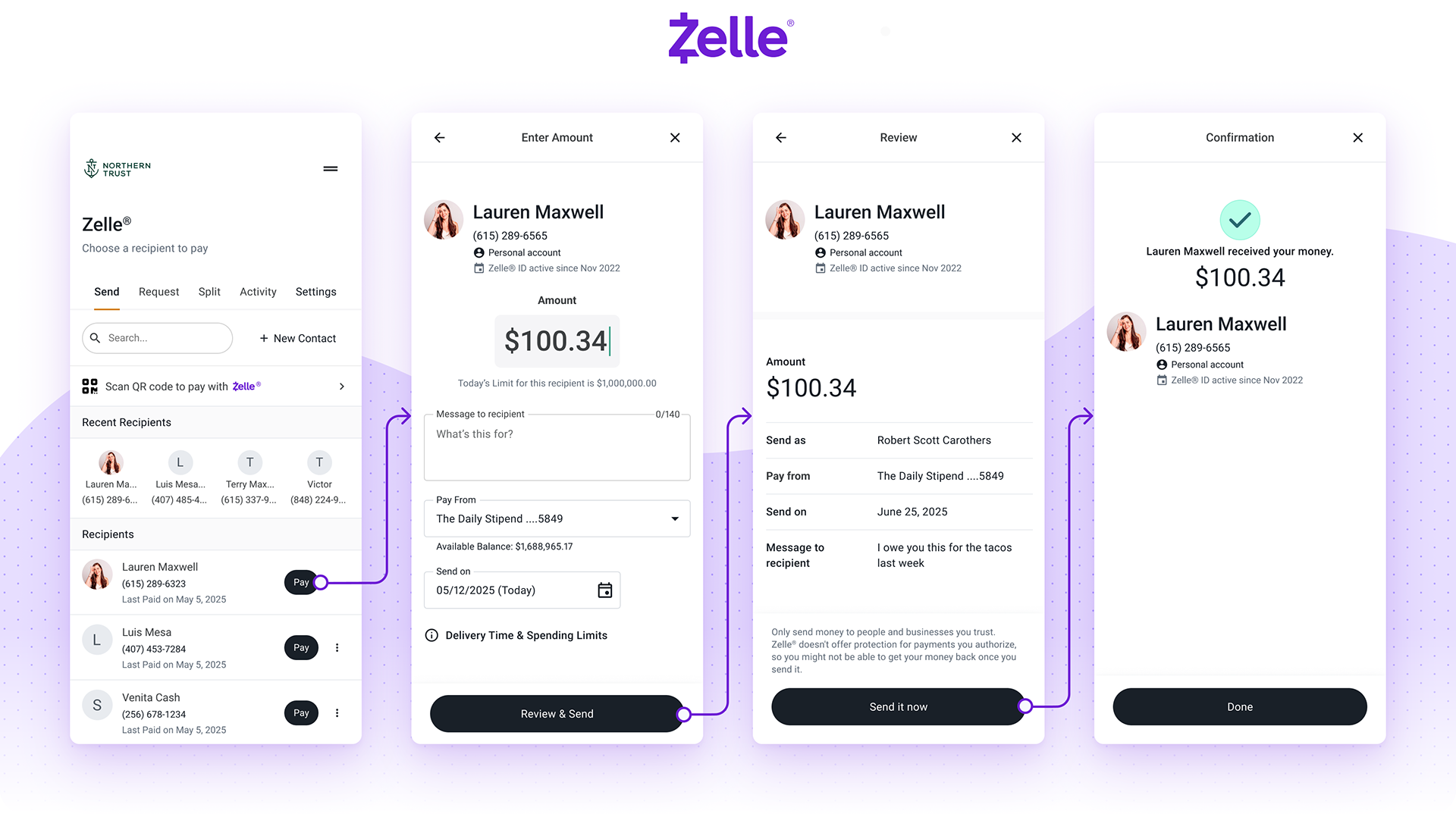 The concept shown below demonstrates how the experience could look if Northern Trust invested in cohesive, design-led solutions instead of stop-gap containers. This exploration wasn’t just about Zelle; it was about proving the value of UX as a strategic differentiator—and highlighting the widening gap between what’s easiest for engineers to implement and what clients actually need. These are some of the wealthiest clients on the planet. They deserve better.