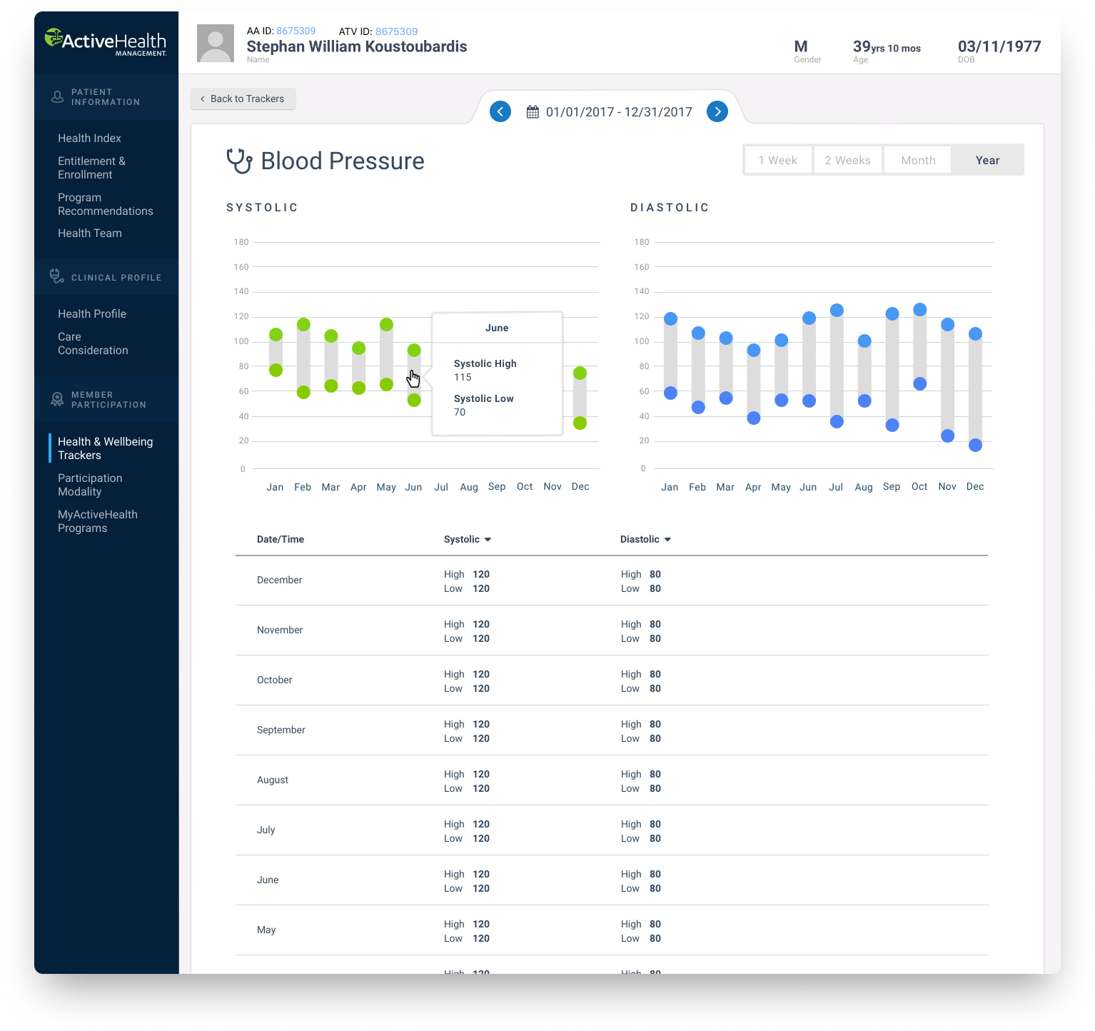 Here’s a snapshot of a project I worked on in 2017. It enabled Care Team representatives to monitor patients’ health and reach out if their biometrics indicated any issues.